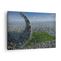 Bild auf Leinwand - Leinwandbild - Eine dynamische Stadt mit einem surrealen Twist - 70x50cm - Die Natur ist ewig - Moderne Wanddekoration für Wohnzimmer und Schlafzimmer ARTTOR