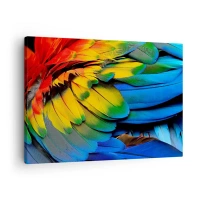 Bild auf Leinwand - Leinwandbild - Eine Nahaufnahme der bunten Federn eines Papageis - 70x50cm - Paradiesvogel - Moderne Wanddekoration für Wohnzimmer und Schlafzimmer ARTTOR
