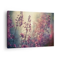 Bild auf Leinwand - Leinwandbild - Blumen im Sonnenlicht vor dem Hintergrund der Natur - 70x50cm - Geheimnisvoller Garten - Moderne Wanddekoration für Wohnzimmer und Schlafzimmer ARTTOR