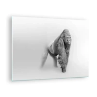 Glasbild - Bild auf glas - Schwarz-Weiß-Porträt eines majestätischen Gorillas vor weißem Hintergrund - 70x50cm - Zuversichtlich in seiner Stärke - Moderne Wanddekoration für Wohnzimmer und Schlafzimmer ARTTOR