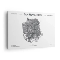 Bild auf Leinwand - Leinwandbild - Eine Karte von San Francisco im minimalistischen Schwarz-Weiß-Stil. - 70x50cm - Anatomie von San Francisco - Moderne Wanddekoration für Wohnzimmer und Schlafzimmer ARTTOR
