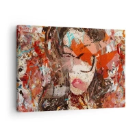 Bild auf Leinwand - Leinwandbild - Farbenfrohes Porträt einer Frau im abstrakten Stil - 70x50cm - Unser erstes Geheimnis - Moderne Wanddekoration für Wohnzimmer und Schlafzimmer ARTTOR