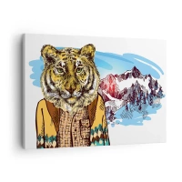 Bild auf Leinwand - Leinwandbild - Ein Tiger im Mantel vor einer Berglandschaft - 70x50cm - Nicht so wild, wie sie ihn zeichnen - Moderne Wanddekoration für Wohnzimmer und Schlafzimmer ARTTOR