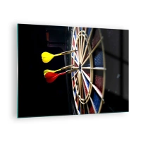Glasbild - Bild auf glas - Darts treffen ein Ziel in einer dunklen Umgebung - 70x50cm - Auf den Punkt gebracht - Moderne Wanddekoration für Wohnzimmer und Schlafzimmer ARTTOR