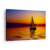 Bild auf Leinwand - Leinwandbild - Ein Segelboot auf ruhiger See bei Sonnenuntergang - 70x50cm - Wie ruhig es hier in der Abenddämmerung ist... - Moderne Wanddekoration für Wohnzimmer und Schlafzimmer ARTTOR