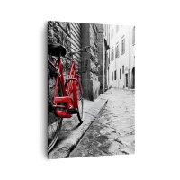 Bild auf Leinwand - Leinwandbild - Rotes Fahrrad in einer schwarz-weißen Straße - 50x70cm - Wahre Schönheit wird nicht alt - Moderne Wanddekoration für Wohnzimmer und Schlafzimmer ARTTOR