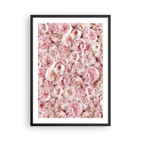 Poster in einem schwarzem Rahmen - Ein romantisches Arrangement aus rosa Blumen in Nahaufnahme - 50x70cm - Auf Rosen gebettet - Moderne Wanddekoration für Wohnzimmer und Schlafzimmer ARTTOR
