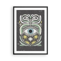 Poster in einem schwarzem Rahmen - Ein symbolisches Auge, umgeben von Pflanzenmustern auf dunklem Hintergrund. - 50x70cm - Stammesrituale - Moderne Wanddekoration für Wohnzimmer und Schlafzimmer ARTTOR