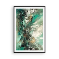 Poster in einem schwarzem Rahmen - Smaragdgrüne und schwarze Brandung - 61x91 cm