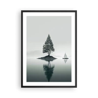 Poster in einem schwarzem Rahmen - Ein einsamer Baum auf einer Insel mit einer Spiegelung im Wasser - 50x70cm - Traum - Moderne Wanddekoration für Wohnzimmer und Schlafzimmer ARTTOR