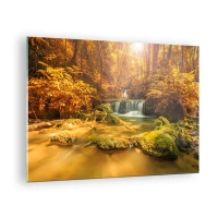 Glasbild - Bild auf glas - Waldkaskade in Gold - 70x50cm - Waldkaskade in Gold - Moderne Wanddekoration für Wohnzimmer und Schlafzimmer ARTTOR