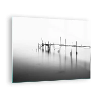 Glasbild - Bild auf glas - Ein schwarz-weißer Steg auf einer ruhigen Wasseroberfläche - 70x50cm - Was ist, wenn es keine Welt gibt? - Moderne Wanddekoration für Wohnzimmer und Schlafzimmer ARTTOR