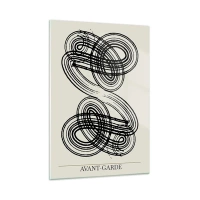 Glasbild - Bild auf glas - Schwarze avantgardistische Schleifen und Linien auf hellem Hintergrund - 50x70cm - Es kam spontan heraus - Moderne Wanddekoration für Wohnzimmer und Schlafzimmer ARTTOR