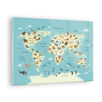 Glasbild - Bild auf glas - Eine farbenfrohe Weltkarte mit Abbildungen von Tieren aus verschiedenen Kontinenten. - 70x50cm - Gute Nachbarn - Moderne Wanddekoration für Wohnzimmer und Schlafzimmer ARTTOR