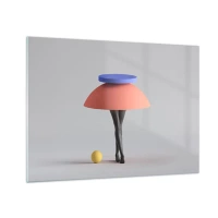 Glasbild - Bild auf glas - Eine surreale Figur aus geometrischen Formen und Beinen - 70x50cm - Surrealistische Komposition - Moderne Wanddekoration für Wohnzimmer und Schlafzimmer ARTTOR