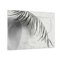 Glasbild - Bild auf glas - Schwarz-weiße Palmblatt-Schattengrafik - 70x50cm - Subtile Exotik der Natur - Moderne Wanddekoration für Wohnzimmer und Schlafzimmer ARTTOR