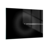 Glasbild - Bild auf glas - Ein Düsenflugzeug auf schwarzem Hintergrund mit Kondensstreifen - 70x50cm - In eine andere Dimension - Moderne Wanddekoration für Wohnzimmer und Schlafzimmer ARTTOR