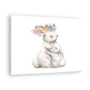 Glasbild - Bild auf glas - Zwei kuschelige Hasen in Pastellfarben - 70x50cm - Bei Mama ist's am schönsten - Moderne Wanddekoration für Wohnzimmer und Schlafzimmer ARTTOR