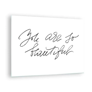 Glasbild - Bild auf glas - „Du bist so schön“-Zitat in einem eleganten, kalligrafischen Stil - 70x50cm - Glauben Sie wirklich ... - Moderne Wanddekoration für Wohnzimmer und Schlafzimmer ARTTOR