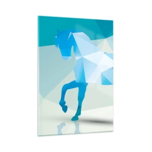 Glasbild - Bild auf glas - Geometrisches Pferd in Blau- und Weißtönen - 50x70cm - Geometrisches Pferd in Türkis - Moderne Wanddekoration für Wohnzimmer und Schlafzimmer ARTTOR