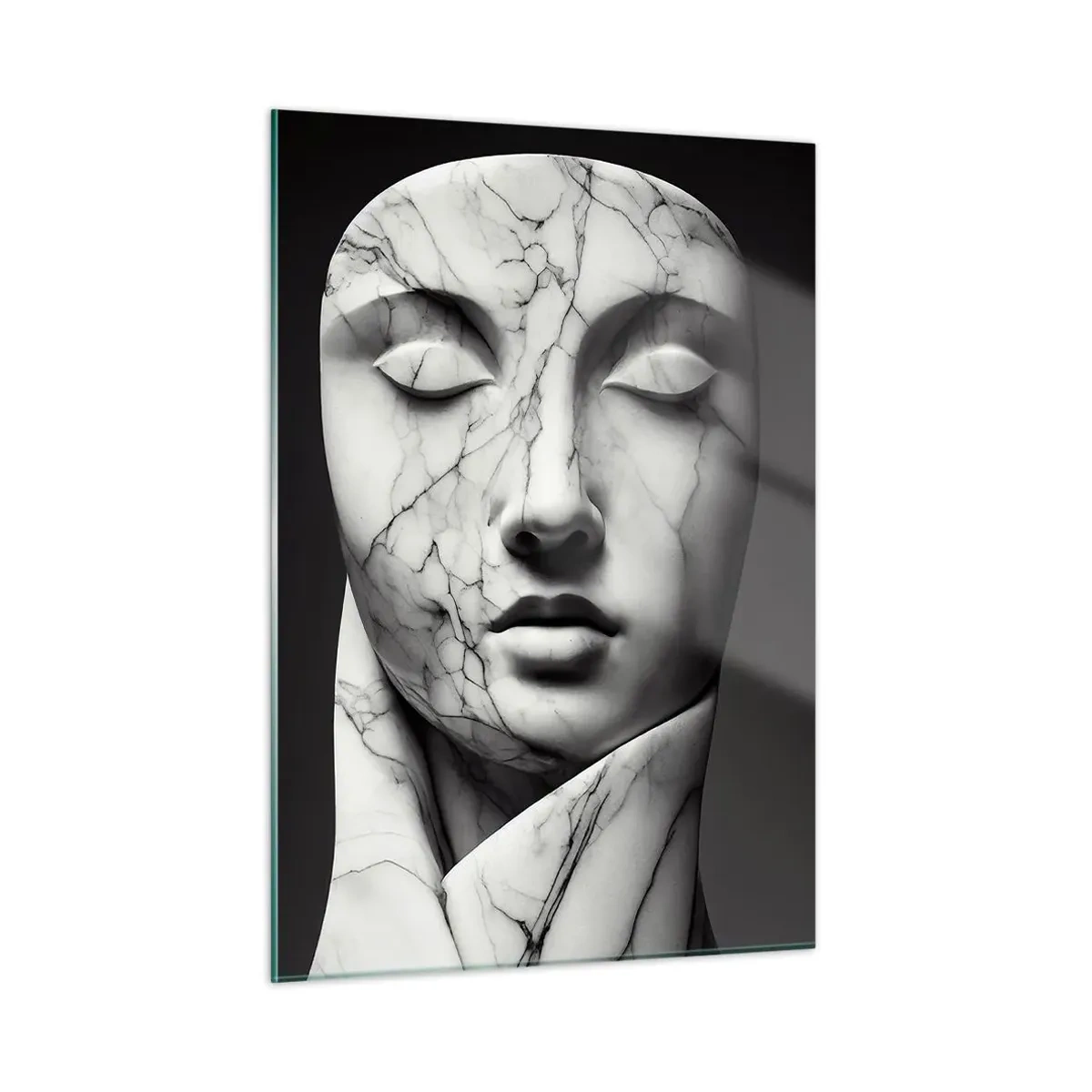 Glasbild - Bild auf glas - Eine kurvenreiche Straße durch einen Winterwald, von einer Drohne aus gesehen - 50x70cm - Durch den Winterwald - Moderne Wanddekoration für Wohnzimmer und Schlafzimmer ARTTOR