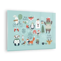 Glasbild - Bild auf glas - Weihnachtstierillustrationen auf pastellfarbenem Hintergrund - 70x50cm - Möge es immer Weihnachten sein! - Moderne Wanddekoration für Wohnzimmer und Schlafzimmer ARTTOR
