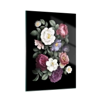 Glasbild - Bild auf glas - Florale Komposition mit Pfingstrosen auf schwarzem Hintergrund - 50x70cm - Aus dem Englischen Garten - Moderne Wanddekoration für Wohnzimmer und Schlafzimmer ARTTOR