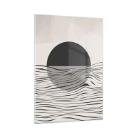 Glasbild - Bild auf glas - Schwarze Wellen und ein Kreis auf beigem Hintergrund - 50x70cm - Halbe Komposition - Moderne Wanddekoration für Wohnzimmer und Schlafzimmer ARTTOR