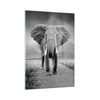 Glasbild - Bild auf glas - Elefant in der Savanne in Schwarz und Weiß - 50x70cm - Der Gastgeber heißt willkommen - Moderne Wanddekoration für Wohnzimmer und Schlafzimmer ARTTOR