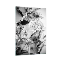 Glasbild - Bild auf glas - Verstreute schwarz-weiße Blumen in einem kunstvollen Arrangement - 50x70cm - Kein Blumenstrauß - Moderne Wanddekoration für Wohnzimmer und Schlafzimmer ARTTOR
