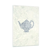 Glasbild - Bild auf glas - Teekanne im Vintage-Stil mit Blumenmuster - 50x70cm - Tee-Charm - Moderne Wanddekoration für Wohnzimmer und Schlafzimmer ARTTOR