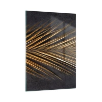 Glasbild - Bild auf glas - Goldenes Palmblatt auf dunklem Hintergrund - 50x70cm - Das Gold der Tropen - Moderne Wanddekoration für Wohnzimmer und Schlafzimmer ARTTOR