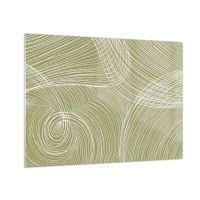 Glasbild - Bild auf glas - Weiße Linien bilden vor einem olivgrünen Hintergrund eine komplexe Struktur. - 70x50cm - Komplizierte Abstraktion in Weiß - Moderne Wanddekoration für Wohnzimmer und Schlafzimmer ARTTOR