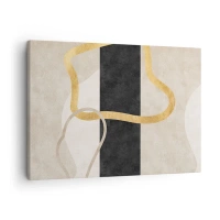 Bild auf Leinwand - Leinwandbild - Ein minimalistisches Design mit geschwungenen Formen in Gold und Schwarz. - 70x50cm - Schleifenformen - Moderne Wanddekoration für Wohnzimmer und Schlafzimmer ARTTOR
