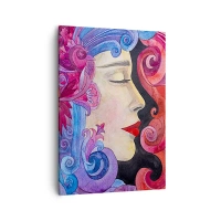 Bild auf Leinwand - Leinwandbild - Buntes Profil einer Frau im künstlerischen Stil - 50x70cm - Der Jugendstil lebt noch - Moderne Wanddekoration für Wohnzimmer und Schlafzimmer ARTTOR