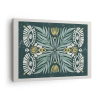 Bild auf Leinwand - Leinwandbild - Symmetrisches Pflanzenmuster auf grünem Hintergrund - 70x50cm - Wie ein Volksausschnitt - Moderne Wanddekoration für Wohnzimmer und Schlafzimmer ARTTOR