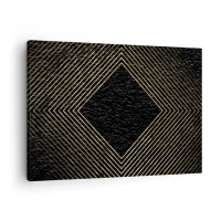 Bild auf Leinwand - Leinwandbild - Schwarzer Hintergrund mit einem geometrischen Muster aus goldenen Linien - 70x50cm - Geometrie im glamourösen Stil - Moderne Wanddekoration für Wohnzimmer und Schlafzimmer ARTTOR