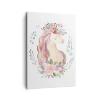 Bild auf Leinwand - Leinwandbild - Ein Einhorn in Pastellfarben, umgeben von Blumen - 50x70cm - Eine Einladung in die Welt der Märchen - Moderne Wanddekoration für Wohnzimmer und Schlafzimmer ARTTOR