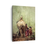 Bild auf Leinwand - Leinwandbild - Kinder mit einem Elefanten in einem grünen Wald im Morgenlicht - 50x70cm - Neues Dschungelbuch - Moderne Wanddekoration für Wohnzimmer und Schlafzimmer ARTTOR