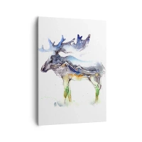 Bild auf Leinwand - Leinwandbild - Künstlerisches Aquarell eines Elches mit üppigem Geweih - 50x70cm - Krone des Waldkönigs - Moderne Wanddekoration für Wohnzimmer und Schlafzimmer ARTTOR
