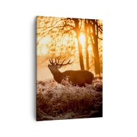 Bild auf Leinwand - Leinwandbild - Zwei Hirsche bei Sonnenuntergang in einer Winterlandschaft - 50x70cm - Der Traum eines Jägers - Moderne Wanddekoration für Wohnzimmer und Schlafzimmer ARTTOR