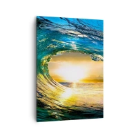 Bild auf Leinwand - Leinwandbild - Meereswelle in der Sonne mit Blick auf den Horizont - 50x70cm - In einem smaragd-goldenen Kristall - Moderne Wanddekoration für Wohnzimmer und Schlafzimmer ARTTOR
