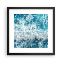 Poster in einem schwarzem Rahmen - Blau schlängelt sich unter dem Weiß - 30x30 cm