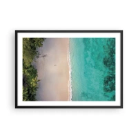 Poster in einem schwarzem Rahmen - Luftaufnahme eines tropischen Strandes mit türkisfarbenem Wasser - 70x50cm - Paradiesstrand - Moderne Wanddekoration für Wohnzimmer und Schlafzimmer ARTTOR