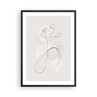 Poster in einem schwarzem Rahmen - Eine minimalistische Strichzeichnung einer weiblichen Silhouette auf hellem Hintergrund. - 50x70cm - Die Form des Verlangens - Moderne Wanddekoration für Wohnzimmer und Schlafzimmer ARTTOR