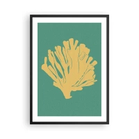 Poster in einem schwarzem Rahmen - Goldene Koralle auf türkisfarbenem Hintergrund - 50x70cm - Unterwasserwaldbusch - Moderne Wanddekoration für Wohnzimmer und Schlafzimmer ARTTOR