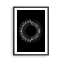 Poster in einem schwarzem Rahmen - Abstrakte konzentrische Kreise in Schwarz und Weiß - 50x70cm - Auf den Punkt gebracht - Moderne Wanddekoration für Wohnzimmer und Schlafzimmer ARTTOR