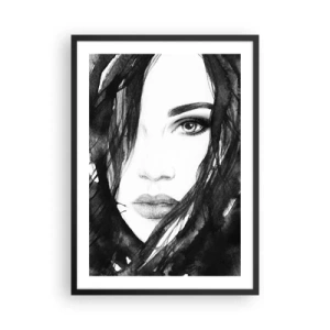 Poster in einem schwarzem Rahmen - Porträt einer Frau im monochromen Stil - 50x70cm - Wilde Schönheit - Moderne Wanddekoration für Wohnzimmer und Schlafzimmer ARTTOR