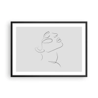 Poster in einem schwarzem Rahmen - Eine minimalistische Skizze des Gesichts einer Frau im Profil. - 70x50cm - Die Drehungen und Wendungen der Träume - Moderne Wanddekoration für Wohnzimmer und Schlafzimmer ARTTOR