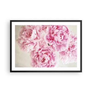Poster in einem schwarzem Rahmen - Ein Strauß rosa Pfingstrosen auf hellem Hintergrund - 70x50cm - In rosa Glamour - Moderne Wanddekoration für Wohnzimmer und Schlafzimmer ARTTOR